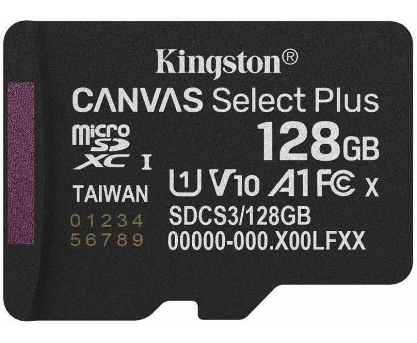 Карта памяти KINGSTON Карта памяти microSDXC UHS-I U1 Canvas Select Plus 128 ГБ, 100 МБ/с, Class 10, SDCS3/128GBSP, 1 шт., без адаптера