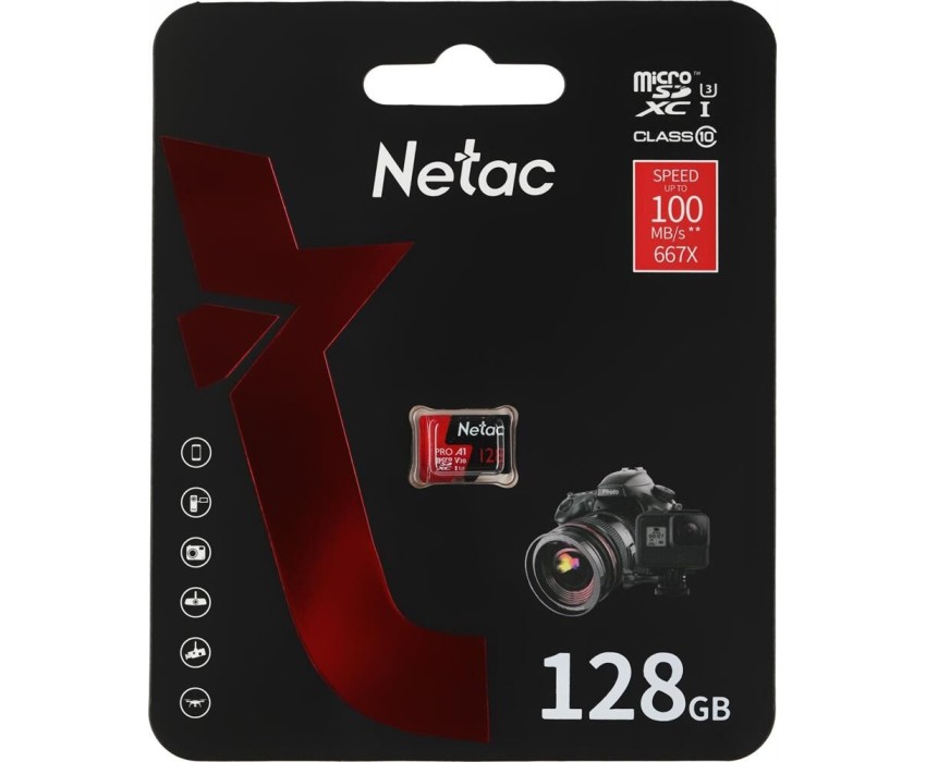 Карта памяти NETAC Карта памяти microSDXC UHS-I U1 P500 Eco 128 ГБ, 90 МБ/с, Class 10, NT02P500ECO-128G-S, 1 шт., без адаптера