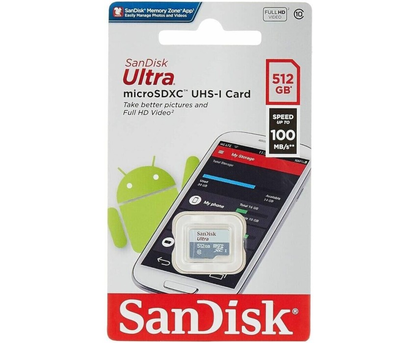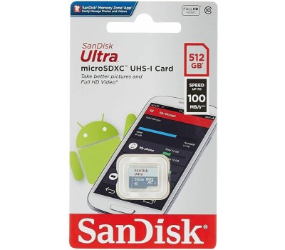 Карта памяти SANDISK Карта памяти microSDXC UHS-I U1 Ultra 512 ГБ, 100 МБ/с, Class 10, SDSQUNR-512G-GN3MN, 1 шт., без адаптера
