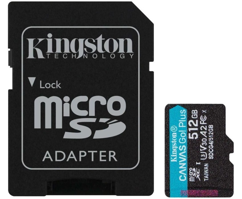 Карта памяти KINGSTON Карта памяти microSDXC UHS-I U3 Canvas Go Plus 512 ГБ, 200 МБ/с, Class 10, SDCG4/512GB, 1 шт., переходник SD