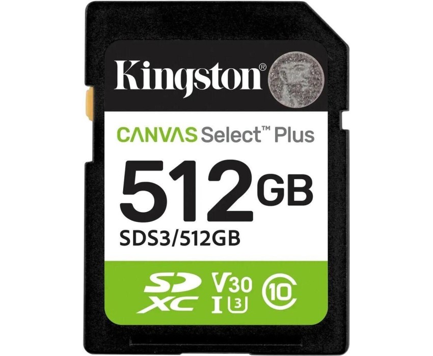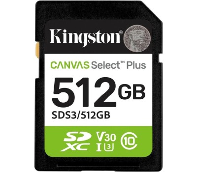 KINGSTON Карта памяти SDXC UHS-I U1 Canvas Select Plus 512 ГБ, 150 МБ/с, Class 10, SDS3/512GB, 1 шт., без адаптера