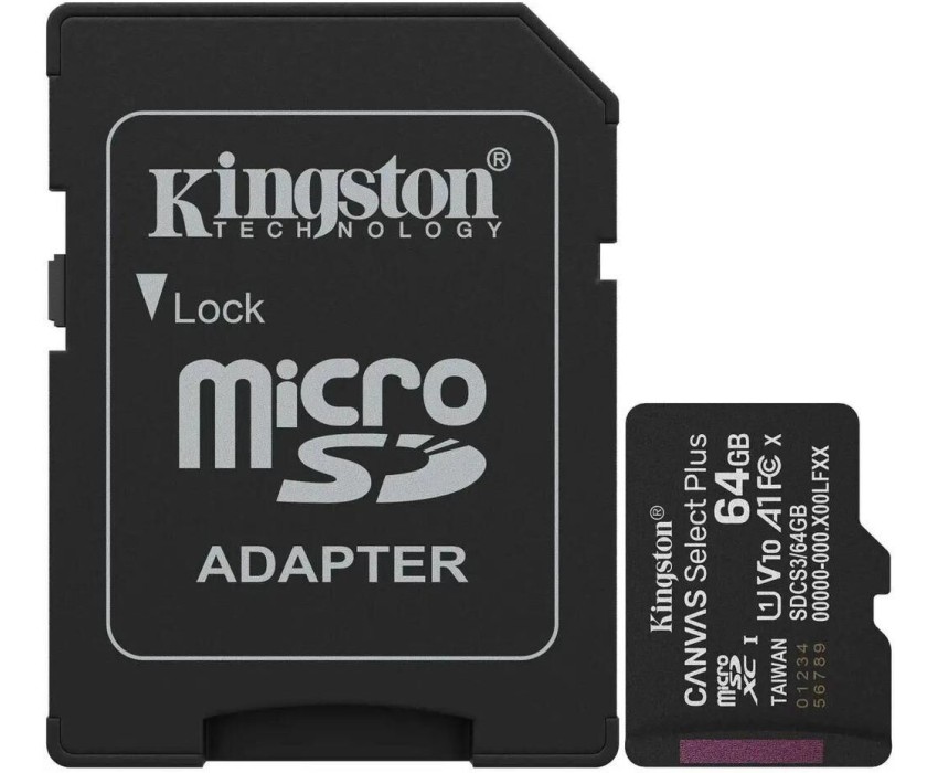 KINGSTON Карта памяти microSDXC UHS-I U1 Canvas Select Plus 64 ГБ, 100 МБ/с, Class 10, SDCS3/64GB, 1 шт., переходник SD