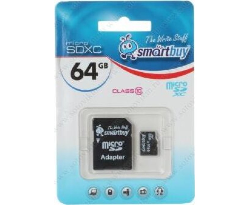 Универсальный носитель информации на основе технологии флэш-памяти для самых различных целей,может использоваться в телефонах, коммуникаторах, видеокамерах, цифровых фотоаппаратах, персональных компьютерах и пр., объем памяти 64Гб, тип карты памяти - micro SDXC, класс скорости - Class 10, адаптер в комплекте.