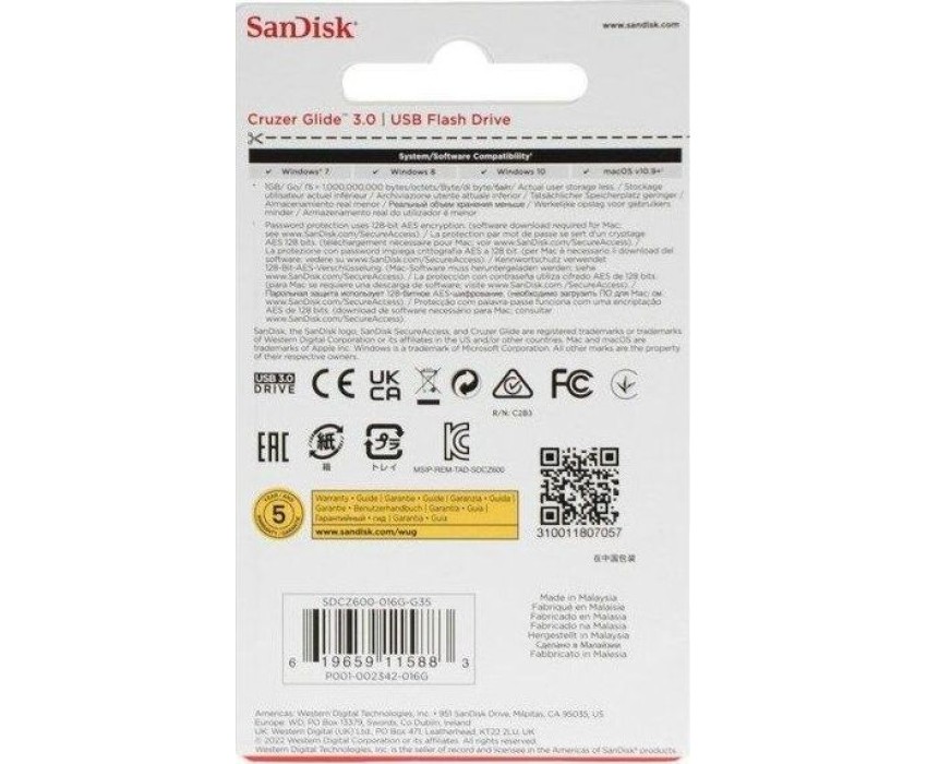флешка SANDISK 16GB Cruzer Glide USB 3.0 (SDCZ600-016G-G35)