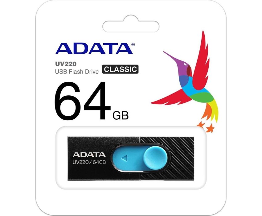USB флэш-накопитель A-DATA 64GB UV220 черный/голубой USB2.0 (AUV220-64G-RBKBL)