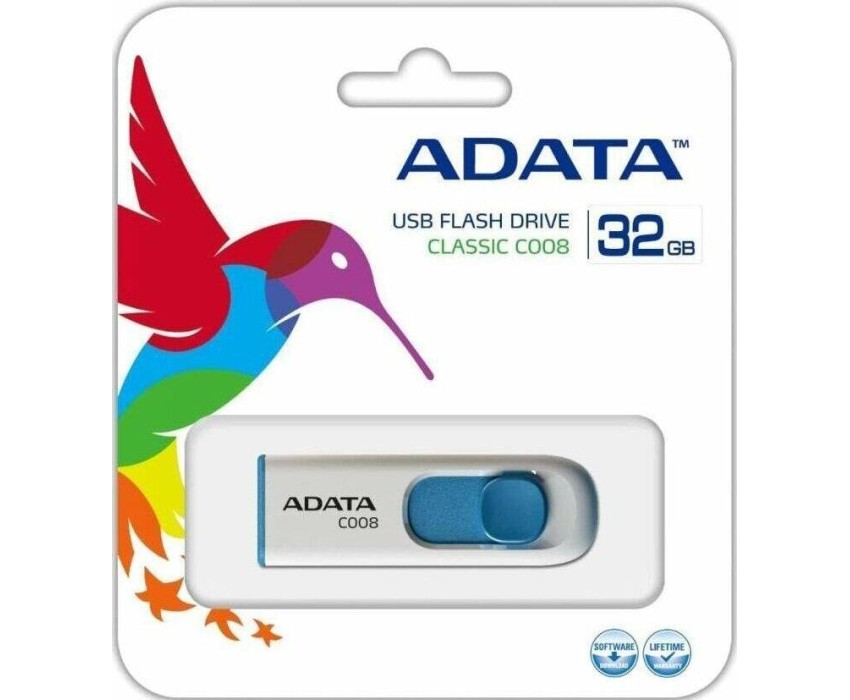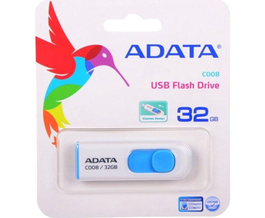 USB флэш-накопитель A-DATA 32GB С008 белый/голубой (AC008-32G-RWE)