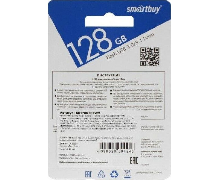 USB-флэш SMARTBUY (SB128GB3TWR) UFD 3.0/3.1 128GB Twist Red красный