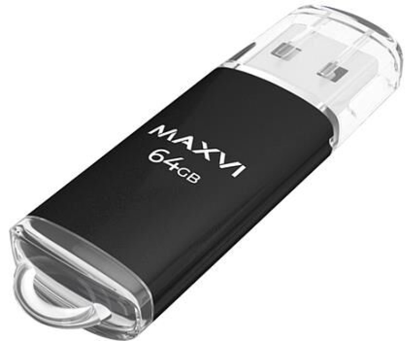 MAXVI USB флеш-накопитель MP 64GB black, монолит с колпачком, металл + ABS пластик, USB 2.0