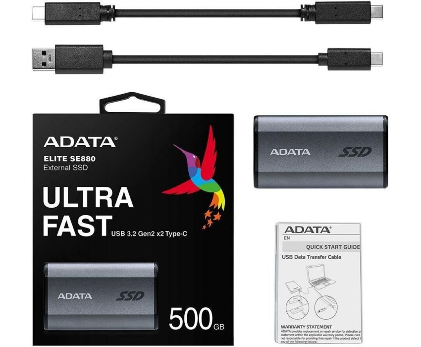 Твердотельный накопитель SSD ADATA Drive SE880 - 500GB 512GB USB 3.2 USB-C Titanium Grey - Rugged, Highly Portable High Speed 2000MB/s Read/Write Compatibility: Windows, Mac OS, Android, Xbox One, PS4, PS5
