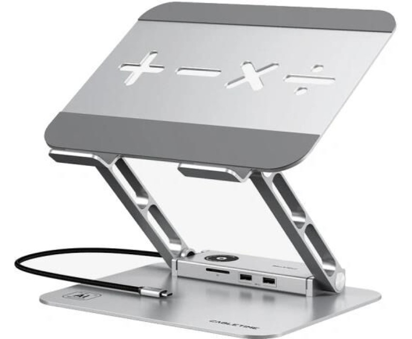 CABLETIME Алюминиевая подставка для ноутбука с вертикальной регулировкой, USB-C док-станция 8 in 1 CS52S, серебристая