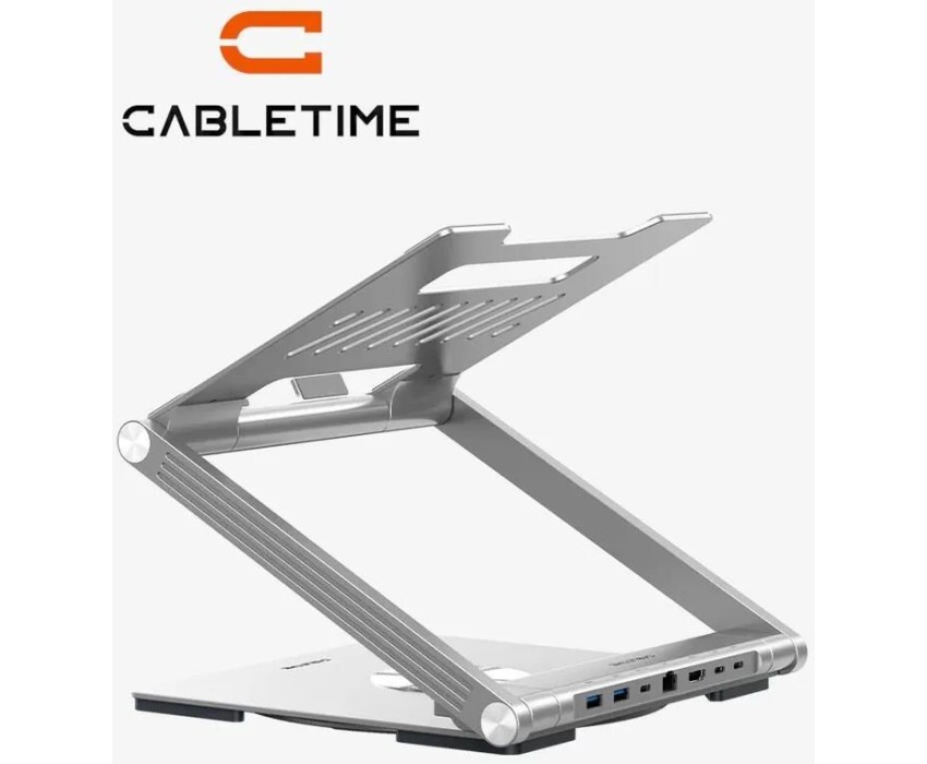 CABLETIME Алюминиевая подставка для ноутбука с верикальной и горизонтальной регулировкой, USB-C док-станция 6 in 1 CS51S, серебристая