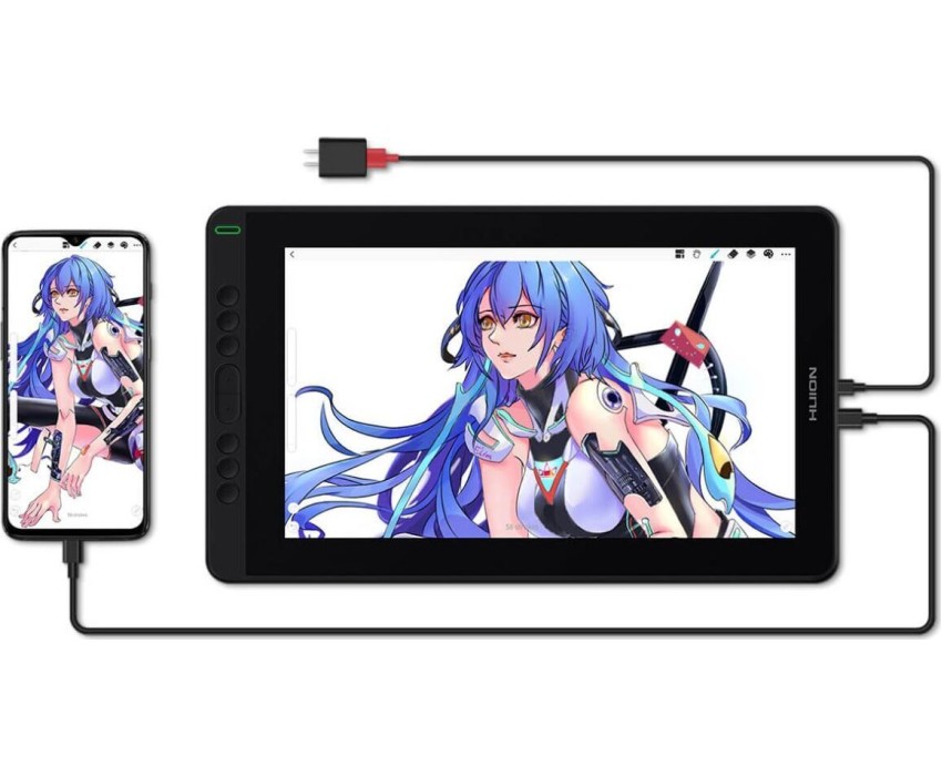 Сенсорный монитор Huion KAMVAS 13 - это новая модель Huion, созданная в соответствии с современными трендами и веяними индустрии. Пора избавляться от адаптеров! Huion KAMVAS 13 способен работать не только от провода 3 в 1 - USB Type C, но и просто через USB Type-C на USB Type-C. Теперь рисовать на мониторе можно не только дома или сидя на рабочем месте, но и в пути, на отдыхе, на природе, ведь KAMVAS 13 это первый сенсорный монитор, который работает не только с ПК, но ещё и совместим с Android устройствами. Вес устройства 980 грамм, а толщина всего 11.8 мм. Графический планшет, размер рабочей области (ДхШ) 293.76х165.24 мм, диагональ экрана: 13.3, разрешение экрана: 1920x1080, количество линий на дюйм (lpi): 5080, перо, количество уровней нажима: 8192, чувствительность пера к наклону, Express Keys