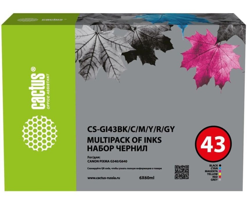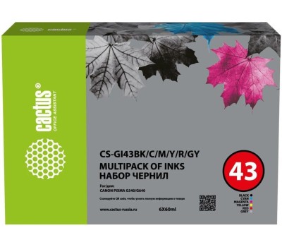 CACTUS Чернила CS-GI43BK/C/M/Y/R/GY голубой/пурпурный/желтый/черный 6x60мл для Canon Pixma G640/G540