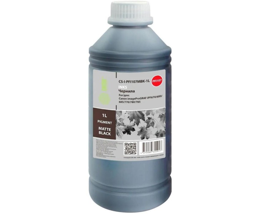 CACTUS Чернила CS-I-PFI107MBK-1L PFI-107 черный матовый1000мл для Canon imageProGRAF iPF670/680/685/770/780/785