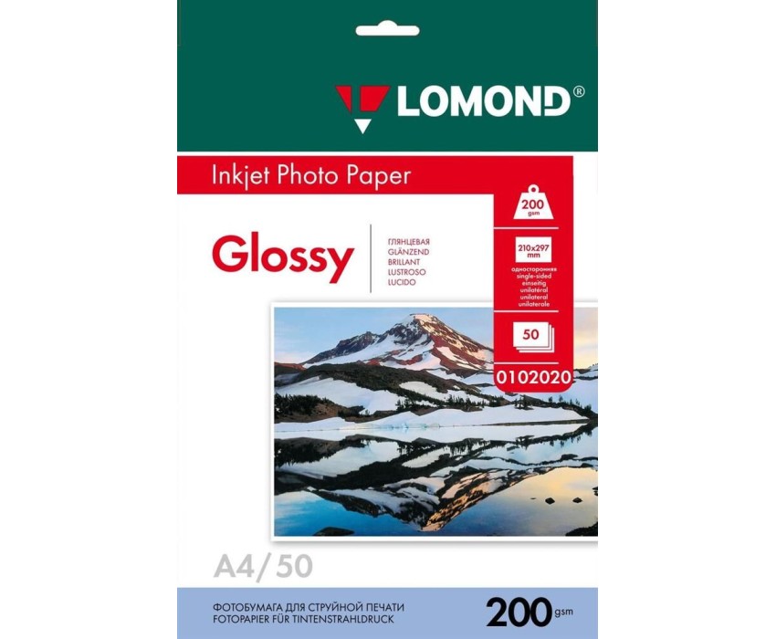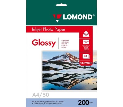 Фотобумага LOMOND Фотобумага A4, для струйной печати, 50л, 200г/м2, белый, покрытие глянцевое [0102020]