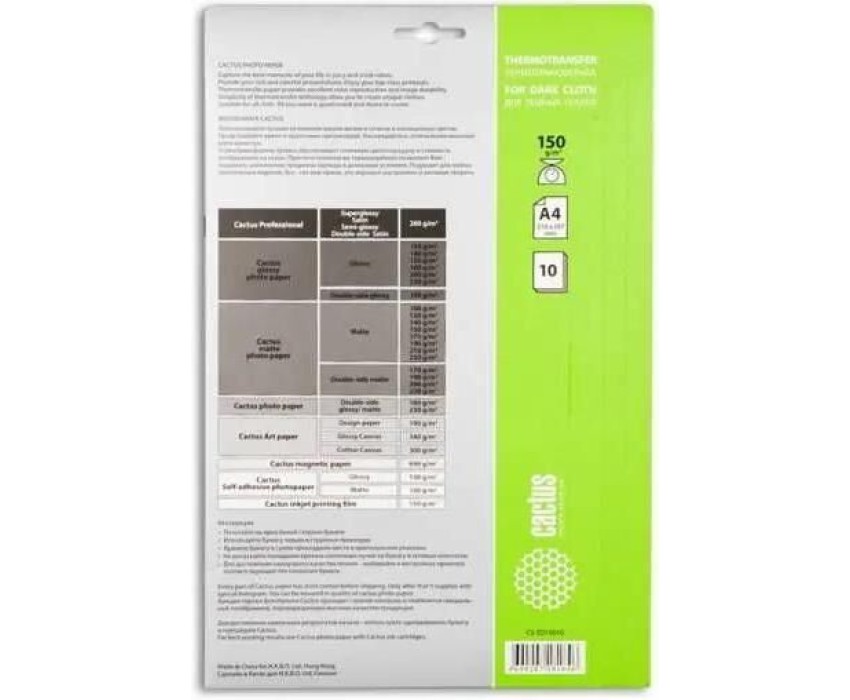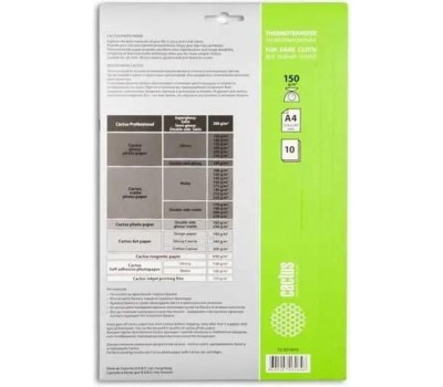 CACTUS Термотрансфер CS-TD15010, A4, для светлых тканей, 10л, 150г/м2