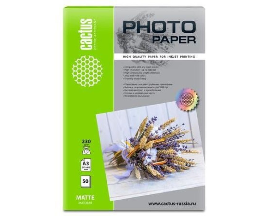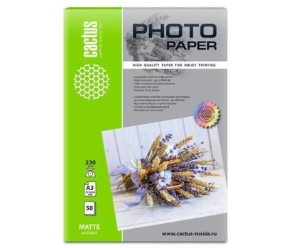 Фотобумага CACTUS Фотобумага CS-MA323050, A3, для струйной печати, 50л, 230г/м2, белый, покрытие матовое