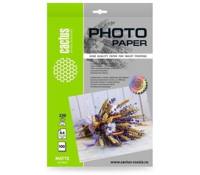 Фотобумага CACTUS Фотобумага CS-MA4230100, A4, для струйной печати, 100л, 230г/м2, белый, покрытие матовое