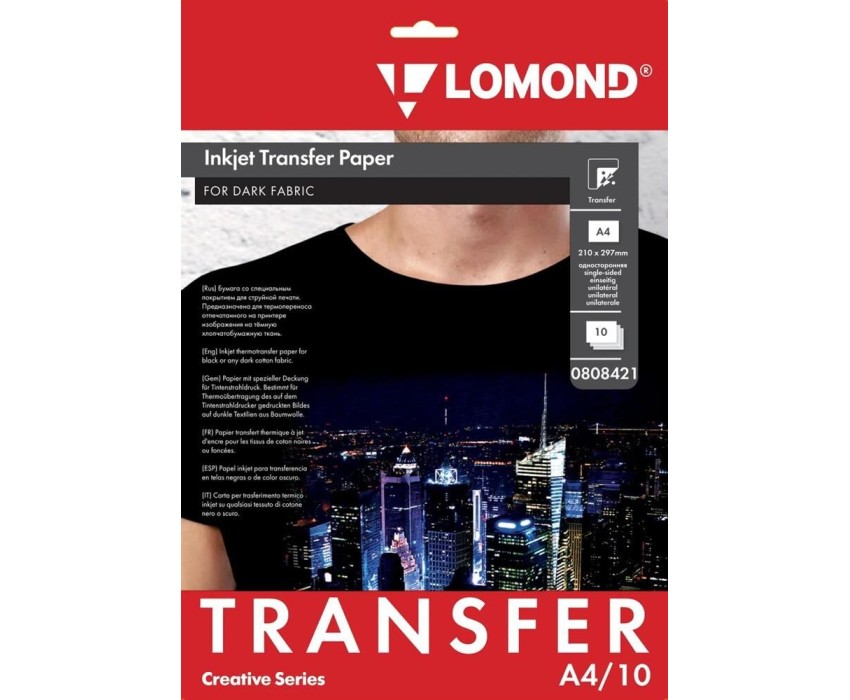 LOMOND Термотрансфер A4, для темных тканей, 10л, 140г/м2, белый [0808421]