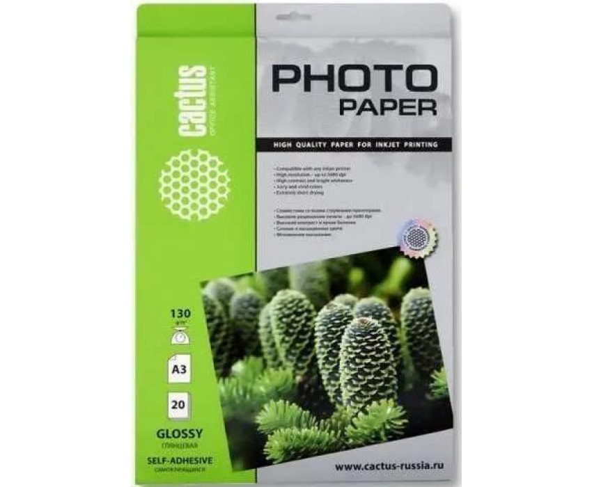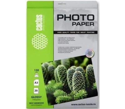 Фотобумага CACTUS Фотобумага CS-GSA313020, A3, для струйной печати, 20л, 130г/м2, белый, покрытие глянцевое