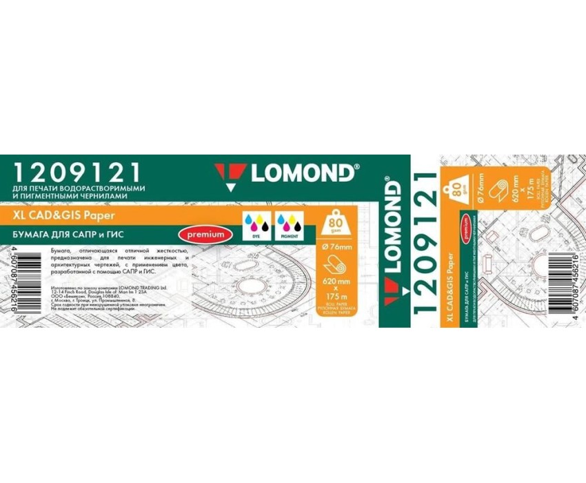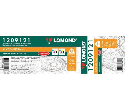 LOMOND Бумага офсетная "Премиум", инженерная, 620мм х 175м, втулка 76мм, 80г/м2, белый, покрытие матовое [1209121]