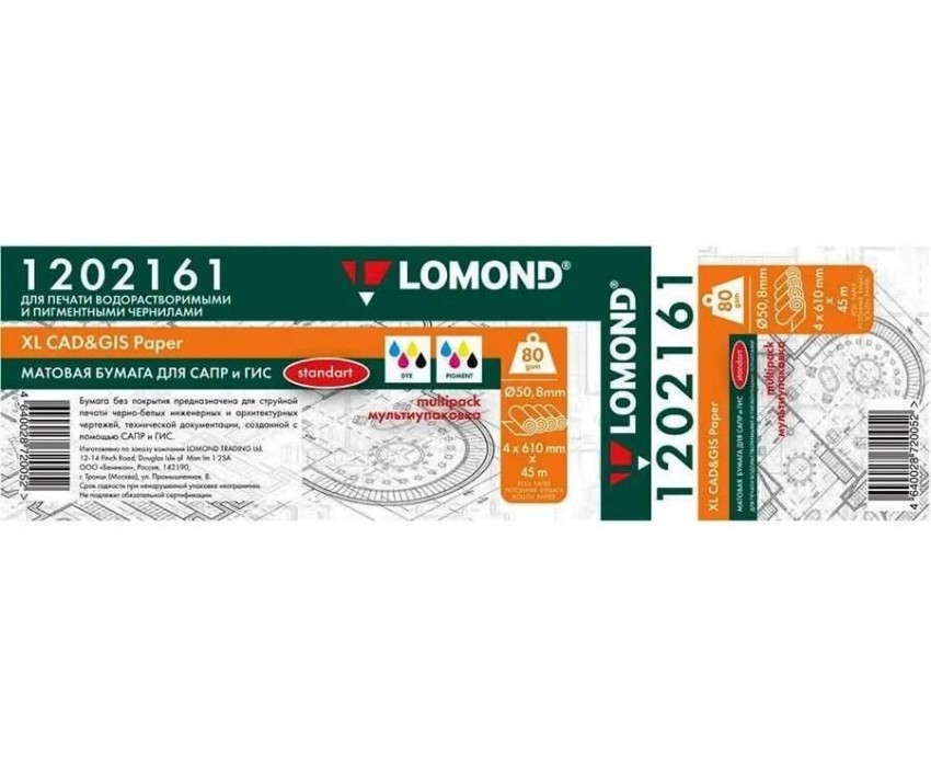 LOMOND Бумага 1202161, для струйной печати, 610мм х 45м, втулка 50.8мм (2"), 80г/м2, белый, покрытие матовое