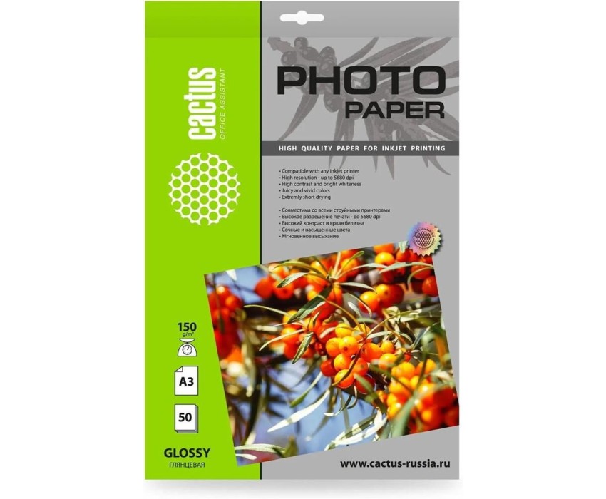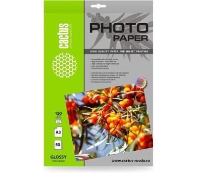 Фотобумага CACTUS Фотобумага CS-GA315050, A3, для струйной печати, 50л, 150г/м2, белый, покрытие глянцевое
