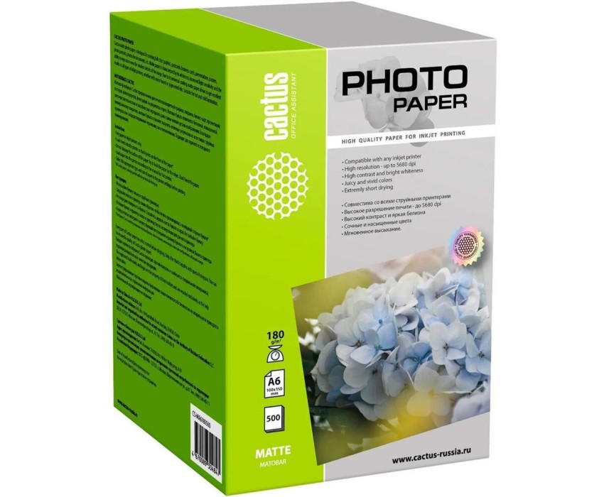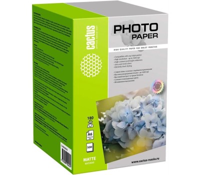 CACTUS Фотобумага CS-MA6180500, A6, для струйной печати, 500л, 180г/м2, белый, покрытие матовое
