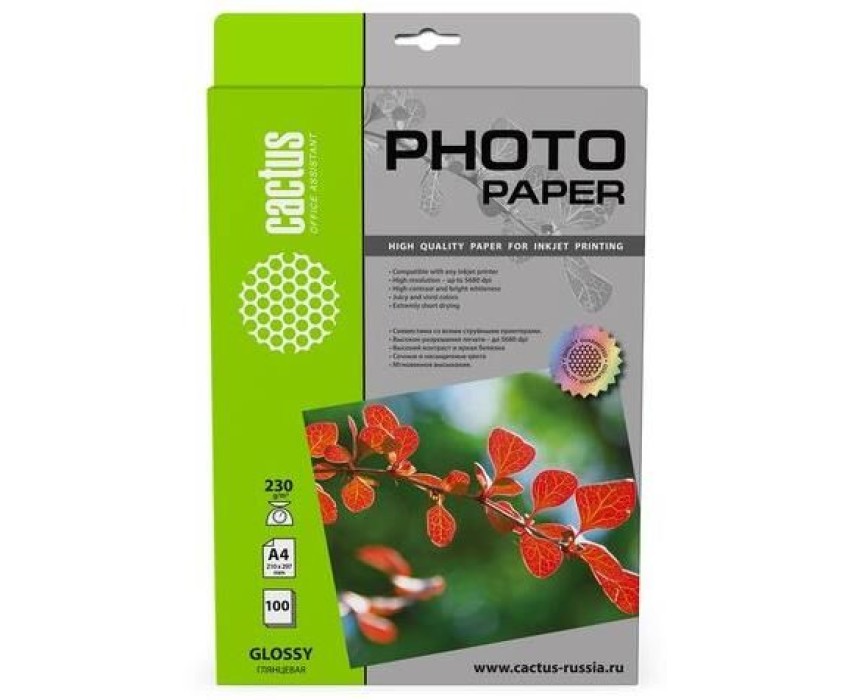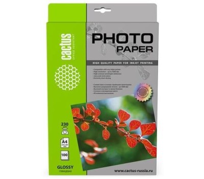 Фотобумага CACTUS Фотобумага CS-GA4230100, A4, для струйной печати, 100л, 230г/м2, белый, покрытие глянцевое