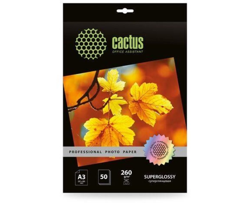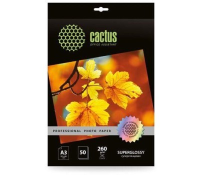 Фотобумага CACTUS Фотобумага Prof, A3, для струйной печати, 50л, 260г/м2, белый, покрытие глянцевое [cs-hga326050]