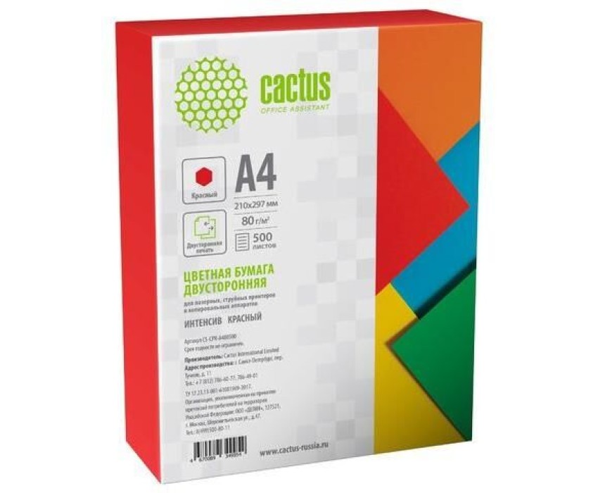 Бумага CACTUS Бумага CS-CPR-A480500, A4, 500л, 80г/м2, красный интенсив