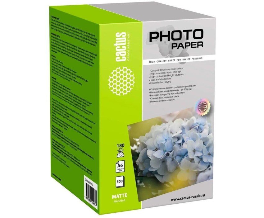 CACTUS Фотобумага CS-MA6180500 A6/180г/м2/500л./белый матовое для струйной печати