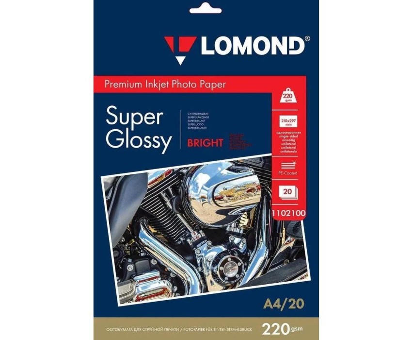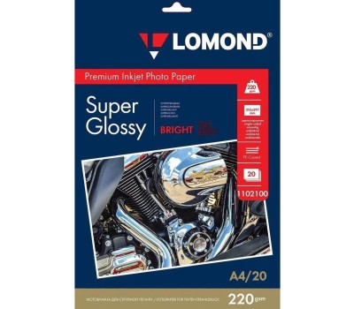 LOMOND Фотобумага 1102100 A4/220г/м2/20л./белый супер глянец для струйной печати