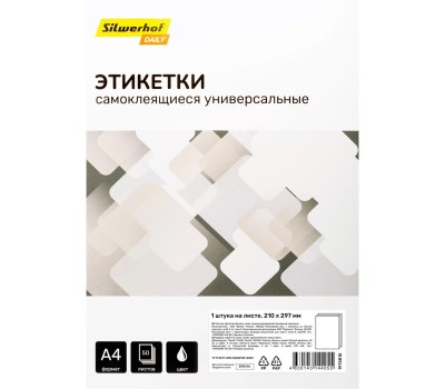 SILWERHOF Этикетки A4 210x297мм 1шт на листе/50л./белый матовое самоклей. универсальная