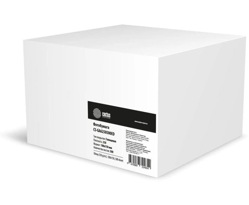 CACTUS Фотобумага CS-GA6250500ED A6/250г/м2/500л./белый глянцевое для струйной печати