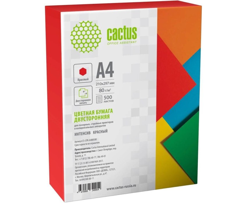 CACTUS Бумага CS-CPR-A480500 A4/80г/м2/500л./красный интенсив