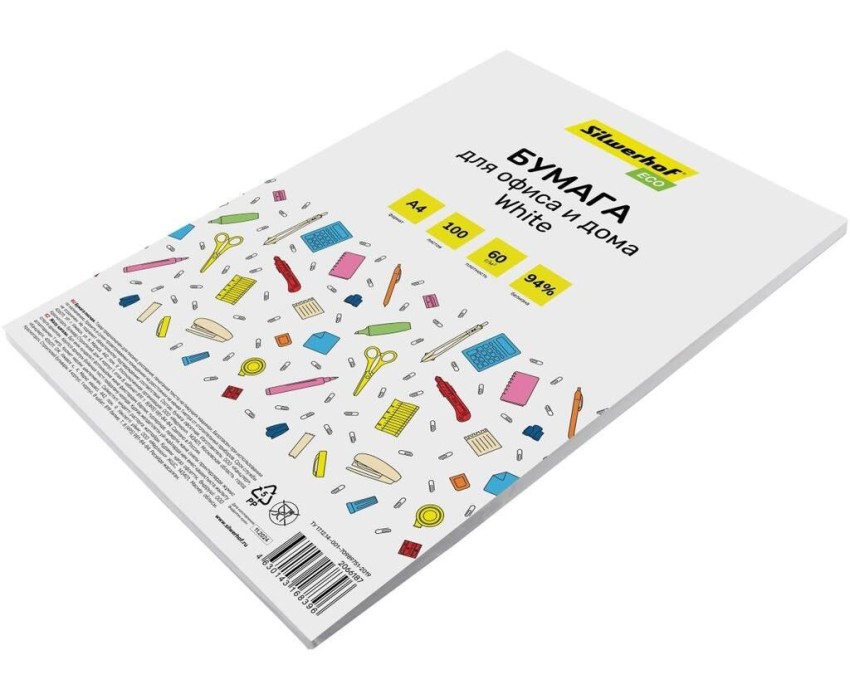 SILWERHOF Бумага ECO A4/60г/м2/100л./белый CIE94% общего назначения(офисная)