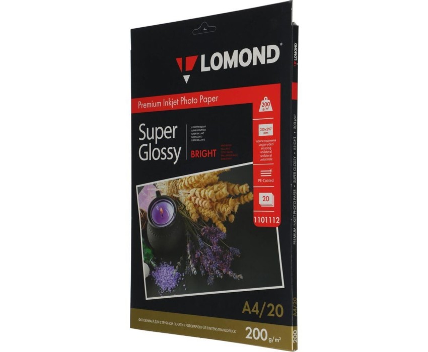 LOMOND Фотобумага 1101112 A4/200г/м2/20л./белый высокоглянцевое для струйной печати
