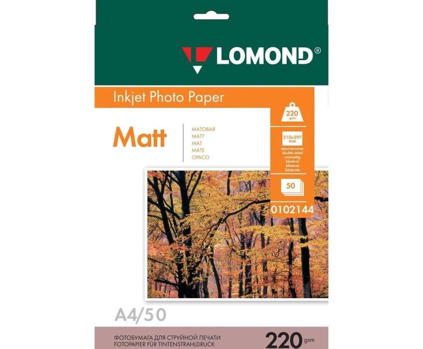 LOMOND Фотобумага 0102144 A4/220г/м2/50л./белый матовое/матовое для струйной печати