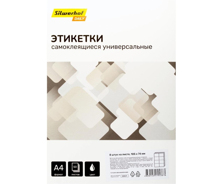 SILWERHOF Этикетки A4 105x74мм 8шт на листе/50л./белый матовое самоклей. универсальная