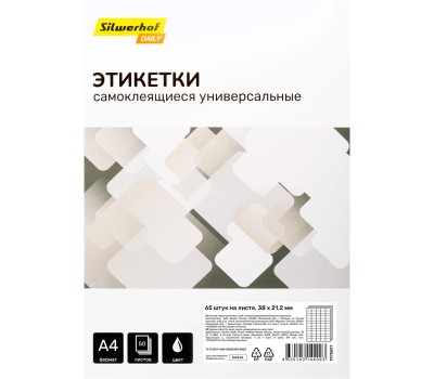 SILWERHOF Этикетки A4 38x21.2мм 65шт на листе/50л./белый матовое самоклей. универсальная
