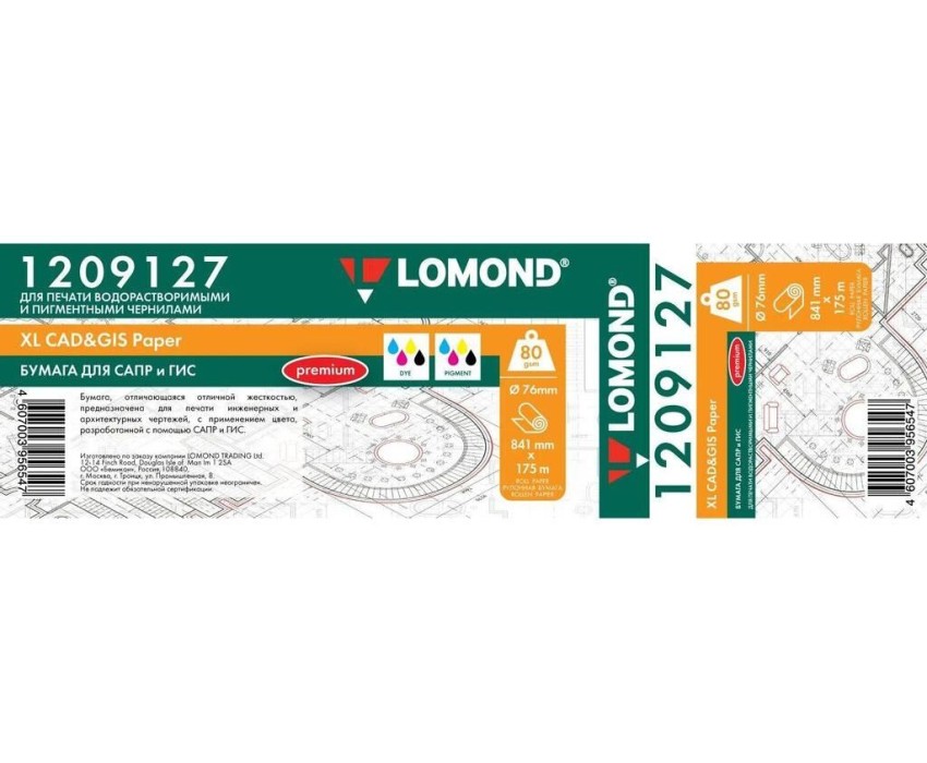 LOMOND Бумага офсетная "Премиум" 1209127 36"(A0) 841мм-175м/80г/м2/белый матовое инженерная бумага втулка:76.2мм (3")