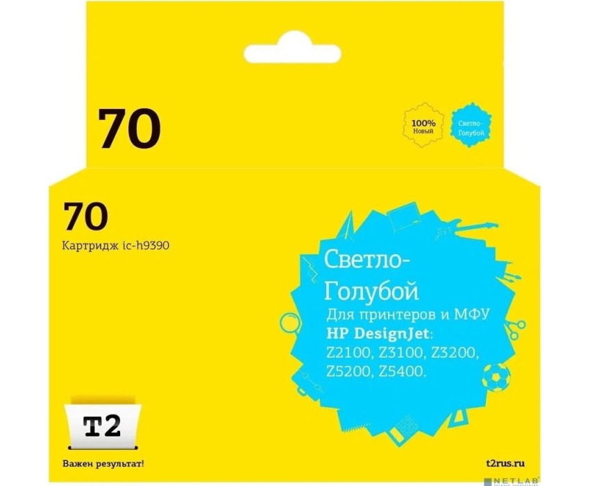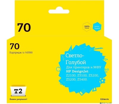 T2 C9390A Картридж (IC-H9390) №70 для HP Designjet Z2100/Z3100/Z3200/Z5200/Z5400, светло-голубой, с чипом, пигментный