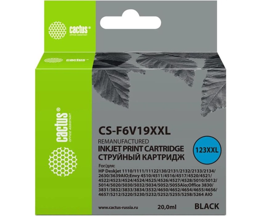 Картридж CACTUS Картридж CS-F6V19XXL №123XL, 123 XXL, черный / CS-F6V19XXL
