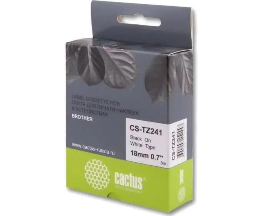 Картридж CACTUS Картридж CS-TZ241, TZe-241, 18мм, черный шрифт, белый фон, 8м ( CS-TZ241
