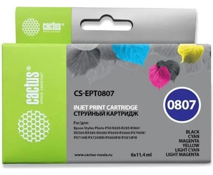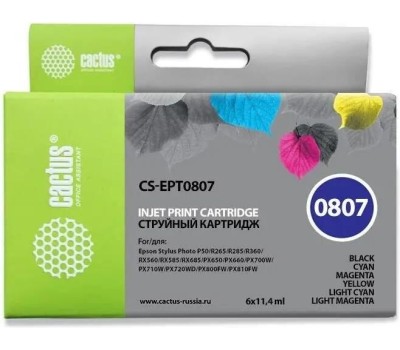 Картридж CACTUS Картридж CS-EPT0807, черный / желтый / голубой / пурпурный / светло-голубой / светло-пурпурный / CS-EPT0807