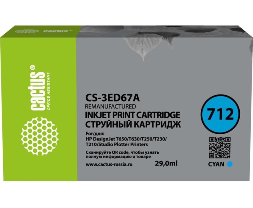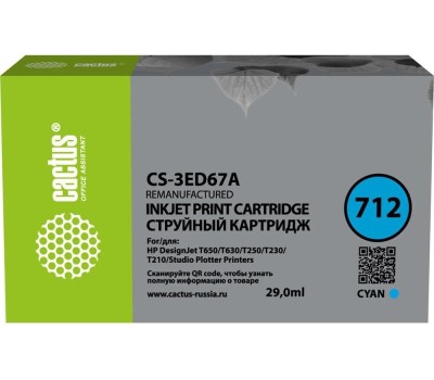 Картридж CACTUS Картридж CS-3ED67A, 712, голубой / CS-3ED67A