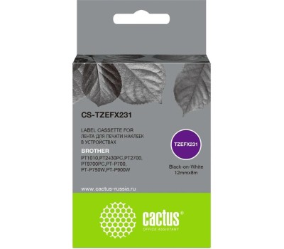 Картридж CACTUS Картридж CS-TZEFX231, TZe-FX231, 12мм, черный шрифт, белый фон, 8м ( CS-TZEFX231