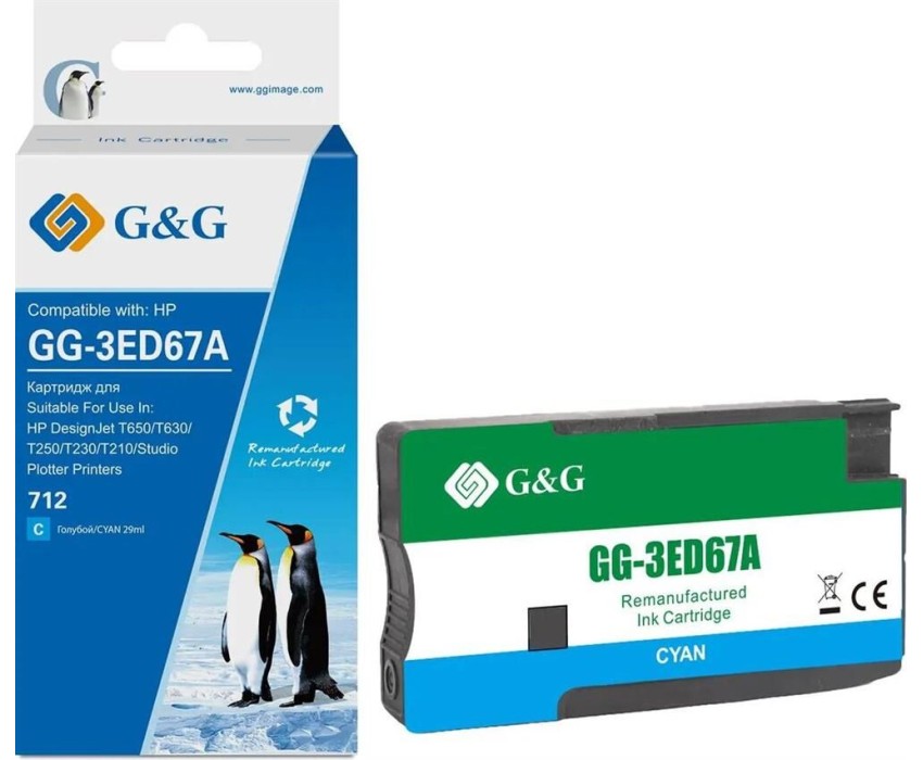 Картридж G&G Картридж GG-3ED67A, 712, голубой / GG-3ED67A