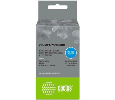 Картридж CACTUS Картридж CS-M21-750595RD, 19.1мм, белый шрифт, красный фон, 6.4м ( CS-M21-750595RD